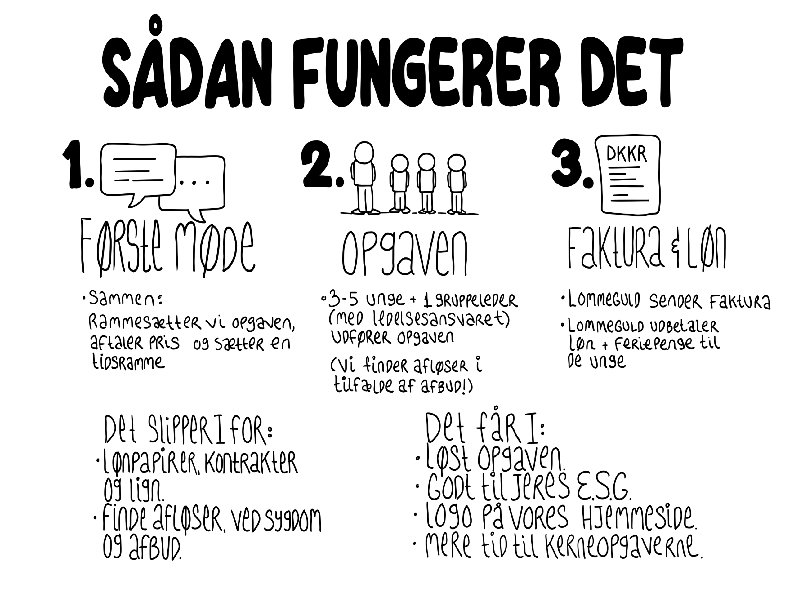 Vi ansætter, lønner, forsikrer og har de unges ryg – så vores kunder kan gøre det de er bedst til.